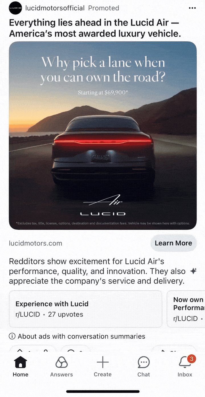 For instance, below a display or video ad, Reddit may automatically surface a curated summary of positive user comments related to that brand or topic.